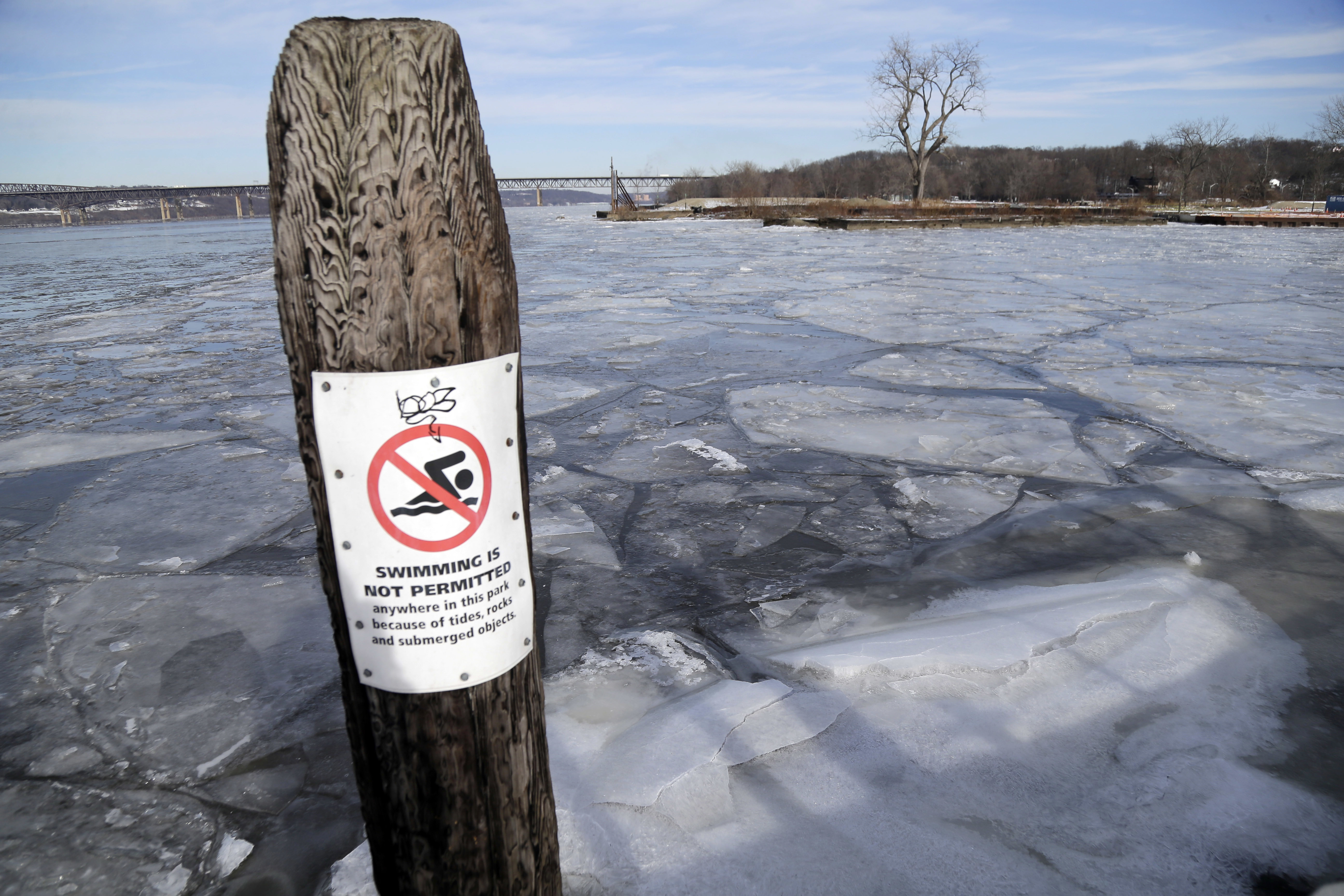 Ice covers large portions of the Hudson River near Beacon, N.Y., Wednesday, Jan. 3, 2018. Bitterly cold temperatures gripped much of the nation on Tuesday, testing the mettle of even winter-wise northerners and delivering a shock to those accustomed to far milder weather in the South. (AP Photo/Seth Wenig)