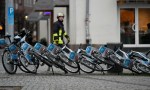 A firefighter passes fallen bicycles in Duesseldorf, Germany, Thursday, Jan. 18, 2018. A powerful storm lashed Europe with high winds and snow, killing at least four people in three countries, grounding flights, halting trains, ripping roofs off buildings and flipping over trucks. (AP Photo/Martin Meissner)