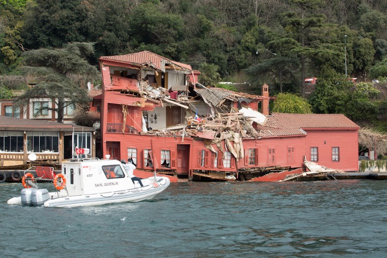 Le yali Hekimbasi Salih Efendi, un édifice en bois peint en rouge de trois étages particulièrement bien conservé, a été éventré et s’est en grande partie effondré, a constaté un journaliste de l’AFP.