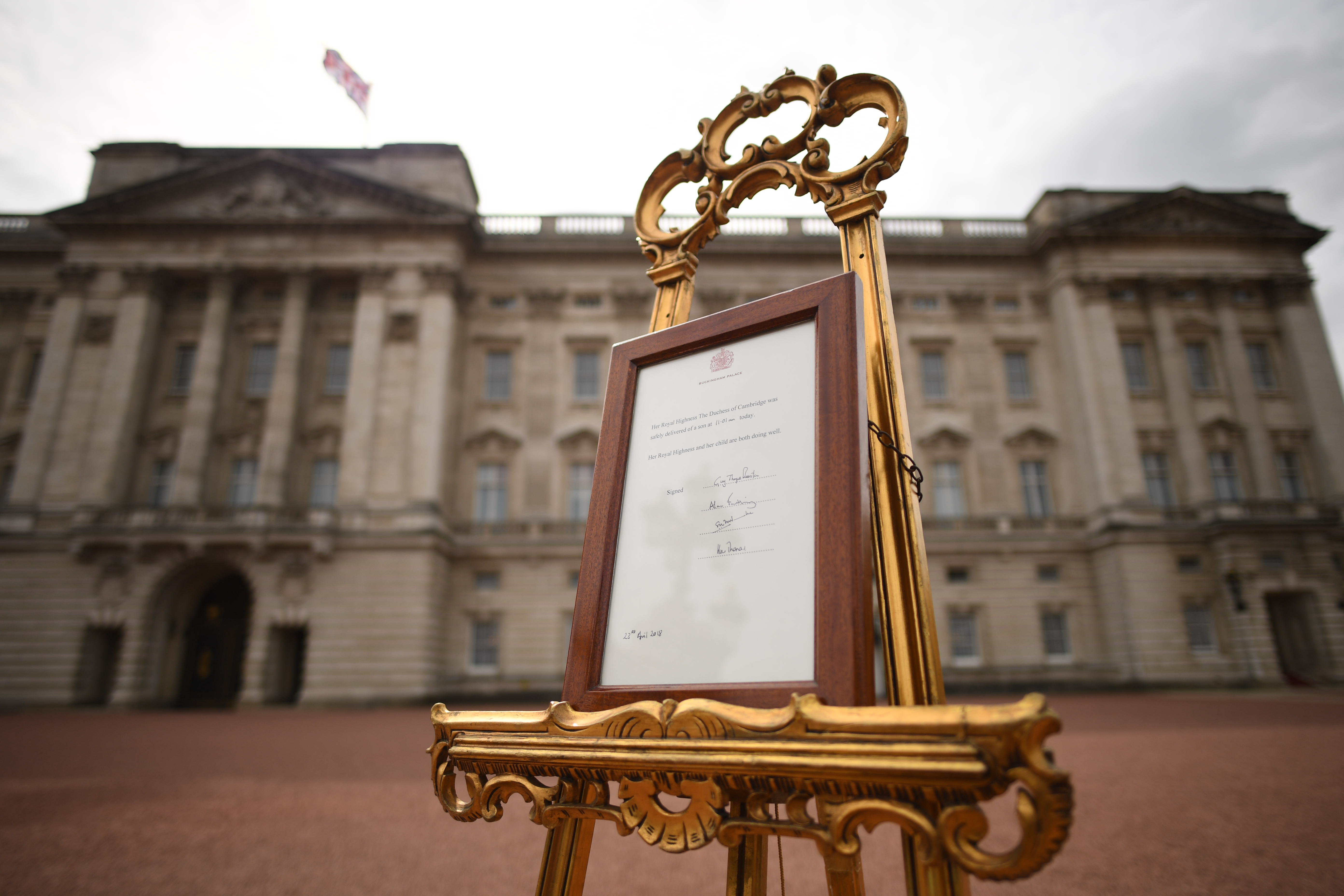 Au moment où Kate a donné naissance, un messager a quitté l’hôpital pour se rendre en voiture au palais de Buckingham, transportant une feuille de papier signée par les médecins, indiquant le sexe de l’enfant, son poids et l’heure de la naissance. Le bulletin a été affiché sur un chevalet de bois dans la cour avant du palais pour que tous puissent le voir.