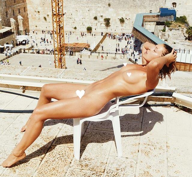 Sur le cliché, Marisa Papen, 26 ans, prend une pose lascive sur une chaise en plastique blanche, avec en arrière-plan le mur des Lamentations qu’elle surplombe depuis la terrasse où elle se trouve.