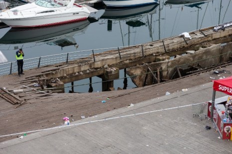 La plateforme de bois et de béton, d’une longueur de 30 mètres et d’une largeur de 10 mètres, située au bord du port, était remplie de spectateurs regardant un concert de rap dans le cadre du festival O Marisquiño lorsqu’elle s’est soudainement effondrée dimanche peu avant minuit.