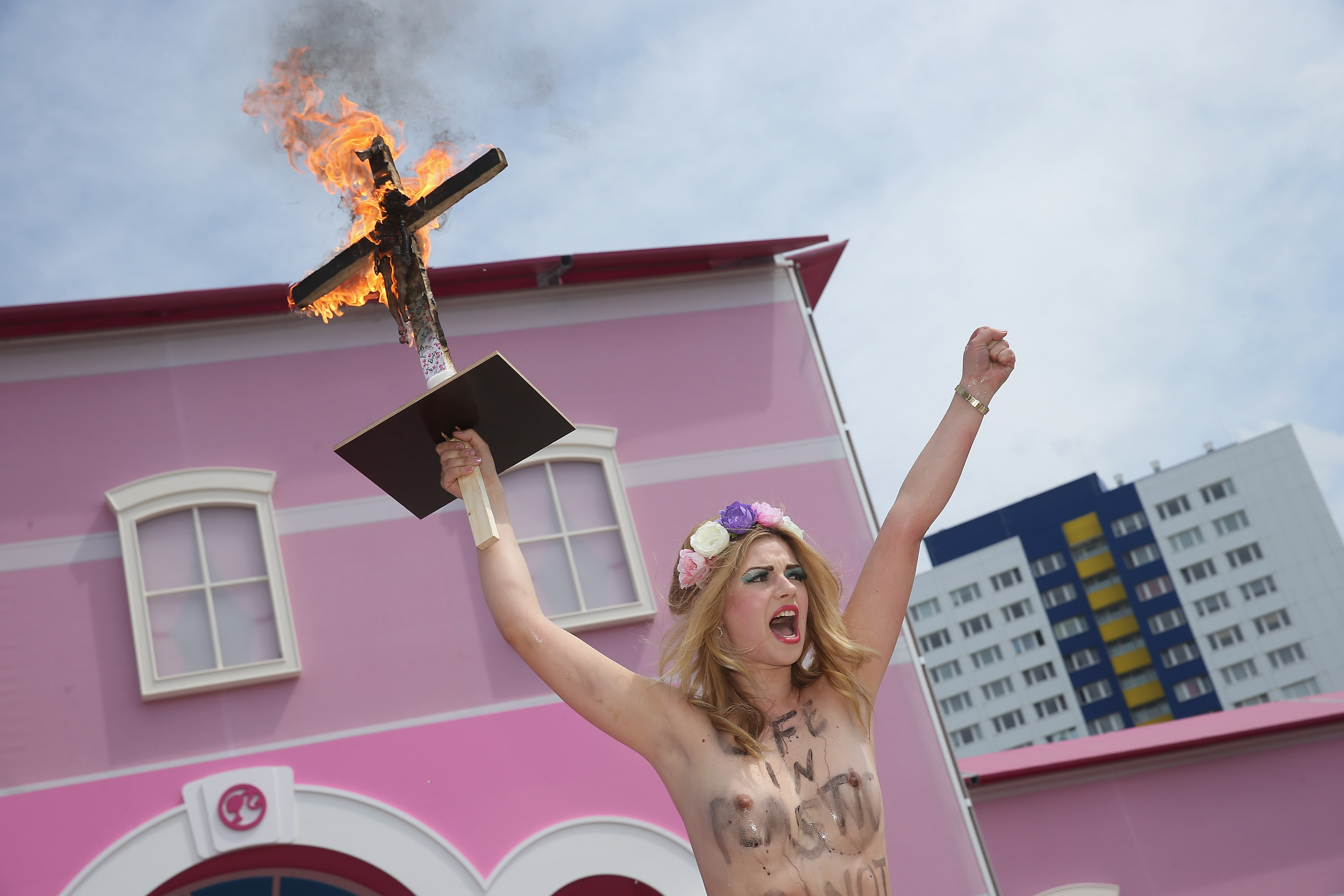 Couronnes de fleurs sur la tête, slogans tracés en grosses lettres noires sur leur poitrine dénudée, ces femmes, souvent jeunes et sveltes, trompent depuis dix ans les services de sécurité, se faufilent dans les foules pendant manifestations ou événements officiels, en hurlant leur message contre toutes formes d’oppression.
