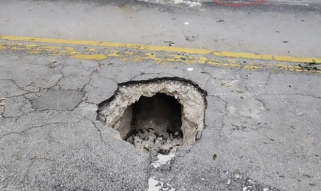 Le trou s’est formé au beau milieu de Flamingo Rd, dans le quartier de Pembroke Pines, dans l’ouest de la ville, au niveau d’une succursale de la Chase Bank. Il a finalement laissé entrevoir un tunnel creusé à quelques centimètres seulement du bitume, selon les photos diffusées sur le compte Twitter de l’antenne locale de la police fédérale.