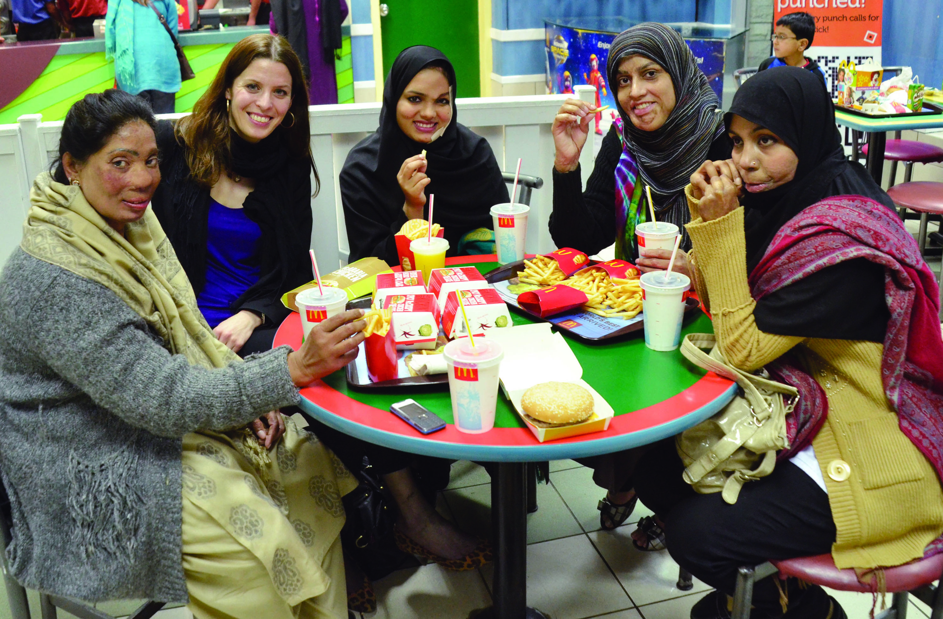 Je dois avouer, à ma grande honte, que, lors de ma première rencontre avec Bushra et ses consœurs survivantes, j’ai été perturbée et j’ai souvent détourné le regard. Mais après quelques heures passées en leur compagnie, tout ce que j’ai éprouvé, c’est de l’admiration pour leur courage et leur absence de ressentiment. Certaines d’entre elles sont extraverties, d’autres sont timides, mais toutes sont formidables. Et leur bonté est incroyable. «Tes mains sont fatiguées, me dit Bushra tandis que je note leurs réponses. Tu as besoin d’un massage des mains.» Et, sans attendre, elle se met à masser mes mains, mes bras et mon cou. Cette femme, qui a vu la mort en face, est maintenant là à se soucier de mes mains!
