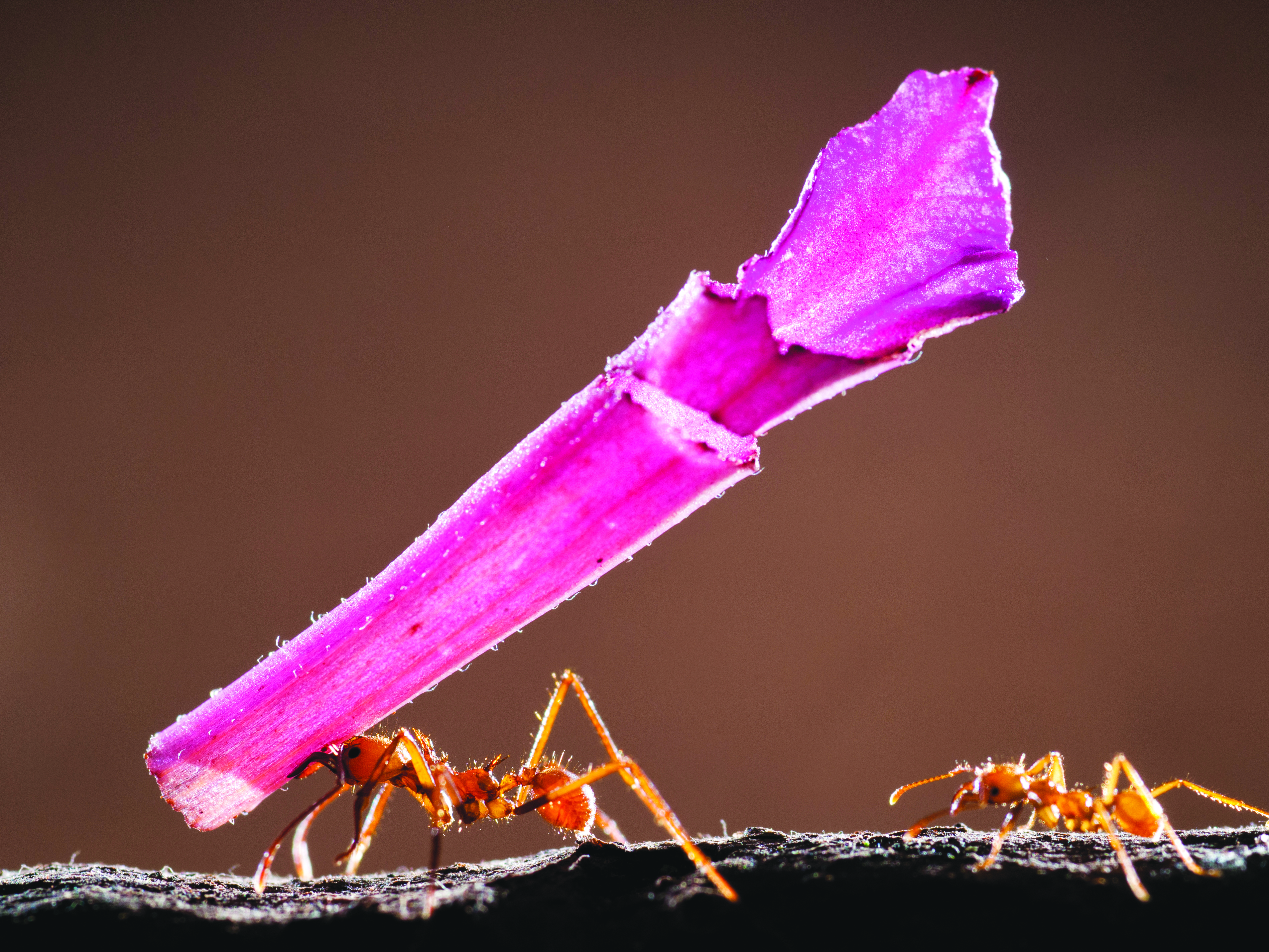 C’est amusant que la fourmi transporte ce qui ressemble à une fleur. Ces insectes apportent des morceaux de plante dans leur fourmilière pour cultiver les fongus qui leur servent de nourriture. Ils savent exactement quels pétales et quels bourgeons sont adaptés à cette fonction.