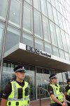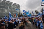 Malgré une forte présence policière entourant l’immeuble de la BBC Scotland, les militants ont manifesté dans le calme, au son de chants patriotiques et de slogans parfois virulents («BBC, shame on you!»).