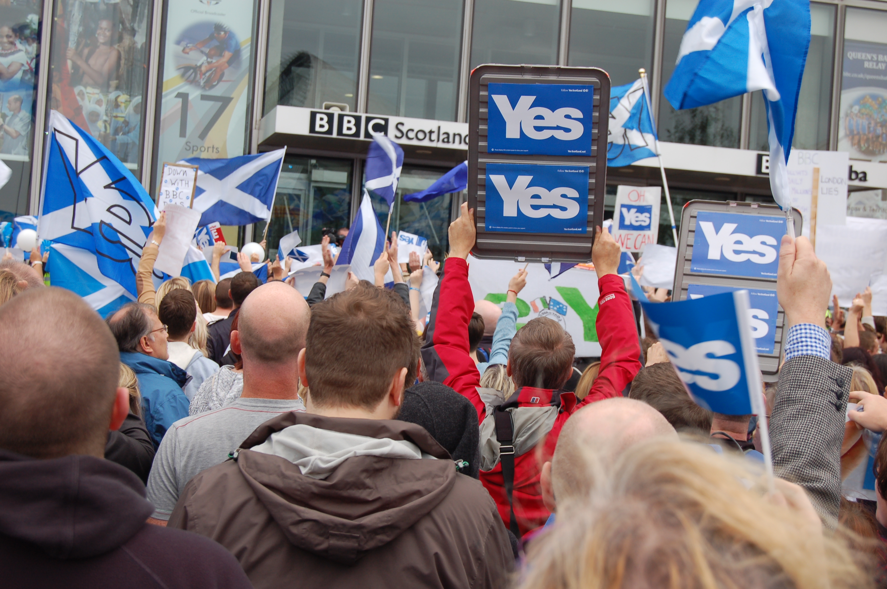 Malgré une forte présence policière entourant l’immeuble de la BBC Scotland, les militants ont manifesté dans le calme, au son de chants patriotiques et de slogans parfois virulents («BBC, shame on you!»).