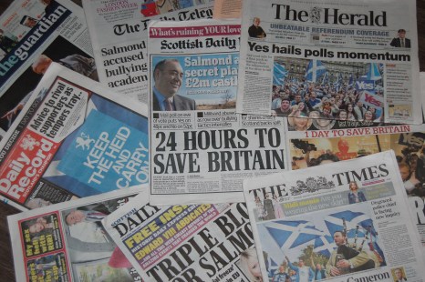 Dans la presse à sensation, farouchement anti-indépendantiste, on déterre tous les scandales susceptibles de discréditer le Scottish National Party (SNP), parti au pouvoir en Écosse. Le Scottish Daily Mail lève entre autres le voile sur de prétendus plans secrets d’Alex Salmond pour établir sa résidence de premier ministre dans un château d’une valeur de 2M£, là où il «pourra régner sur ses fidèles sujets» dans le luxe. Le Daily Star of Scotland y va lui aussi d’une controverse: un déplacement princier en hélicoptère du même M. Salmond.