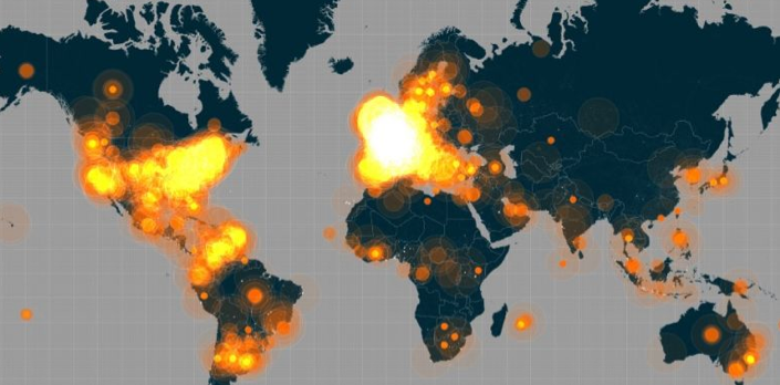 Une progression éclair illustrée par une carte animée qui montre comment le hashtag s’est répandu à travers le monde durant les premières 24 heures. Le témoignage d’un hashtag dont le nombre a culminé à 6 500 tweets par minute à 21h30 le mercredi 7 janvier.