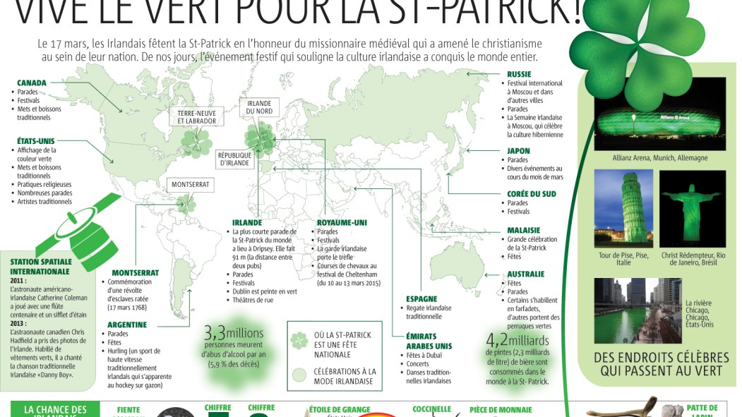 Le 17 mars, les Irlandais fêtent la Saint-Patrick en l’honneur du missionnaire médiéval qui a amené le christianisme au sein de leur nation. De nos jours, l’évènement festif qui souligne la culture irlandaise a conquis le monde entier.