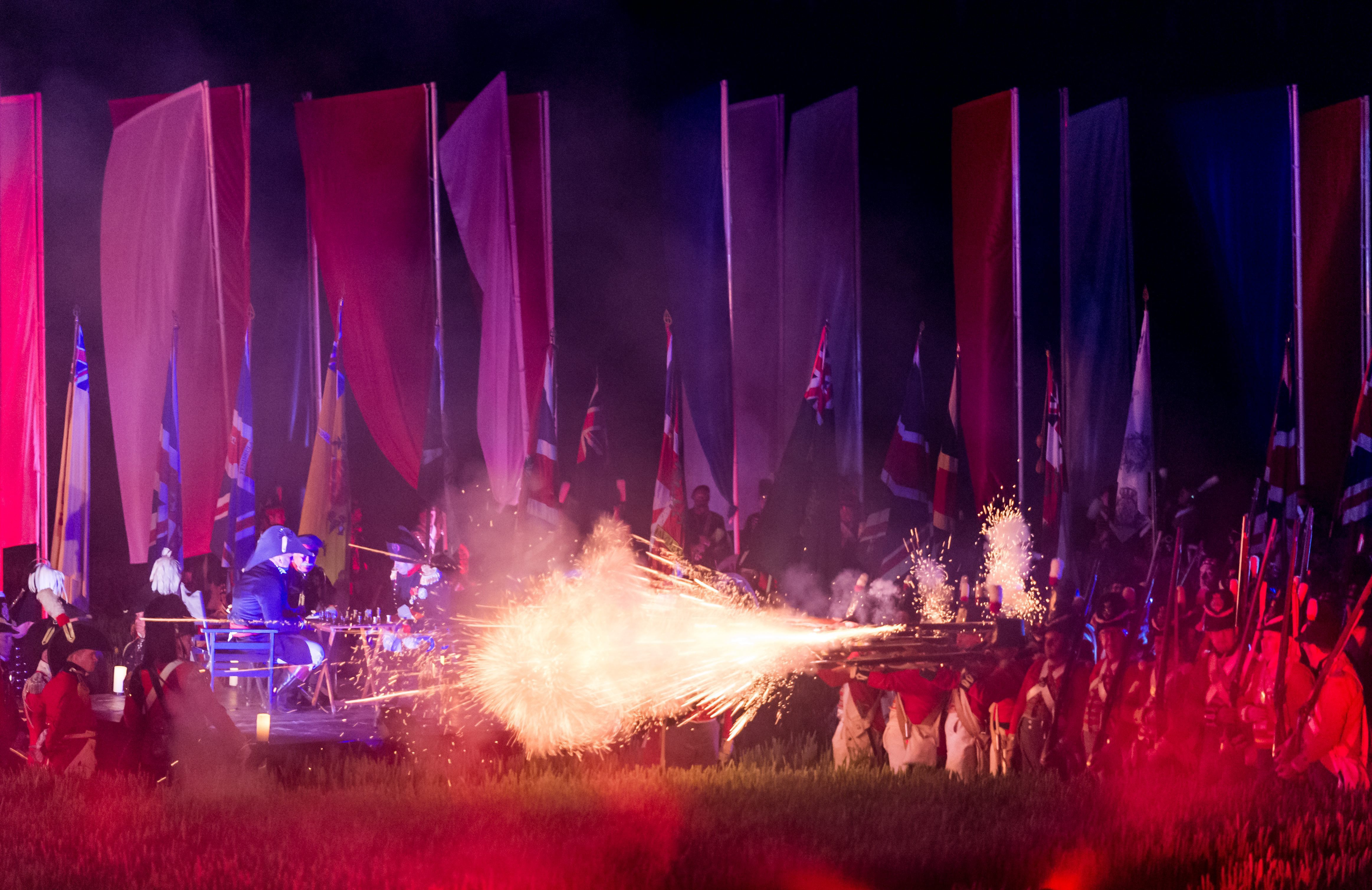 Re-enactors depict scenes during the show « Inferno », as part of the commemoration of the bicentenary of the battle of Waterloo in Braine-l’Alleud, near Waterloo, Belgium on Thursday, June 18, 2015. Royalty, dignitaries and soldiers commemorated the 1815 Battle of Waterloo on Thursday, a watershed moment in European history that marked the end of the continent’s domination by France and its emperor Napoleon and the beginning of the British century. (AP Photo/Geert Vanden Wijngaert)