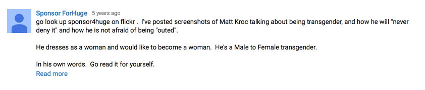 M. Kroczaleski avoue qu’il vivait avec sa transidentité depuis toujours et que cela avait été difficile. Toutefois, elle avoue avoir été très ouverte à en parler avec des collègues culturistes et sa famille depuis plusieurs années. Des membres de la communauté avaient même déjà parlé de la transidentité de la culturiste sur le web. Ce commentaire, publié il y a cinq ans sur une vidéo du culturiste, affirmait: «j’ai déjà publié des capture d’écran de Matt qui discute du fait qu’il est transgenre, comment il “ne le niera jamais”, et comment il n’a pas peur de faire son “coming out”. Il s’habille en femme et aimerait devenir une femme.»