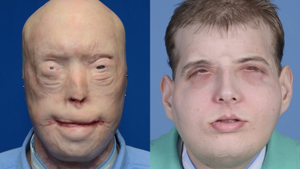 Patrick Hardison, 41 ans, a été sous bistouri pendant 26 heures, en août dernier. Il est actuellement en réadaptation. Entre autres bénéfices issus de la chirurgie, il pourra retrouver la vue.