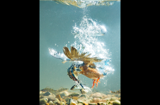 Les martin-pêcheurs sont des oiseaux réputés pour leur extraordinaire capacité d’attraper des poissons en faisant des plongées vertigineuses depuis le ciel jusque dans l’eau. Le photographe néerlandais Jeroen Stel a réussi à en capter un à l’œuvre, dans une image où le plumage coloré du prédateur contraste avec les eaux ternes de Naarden, aux Pays-Bas.