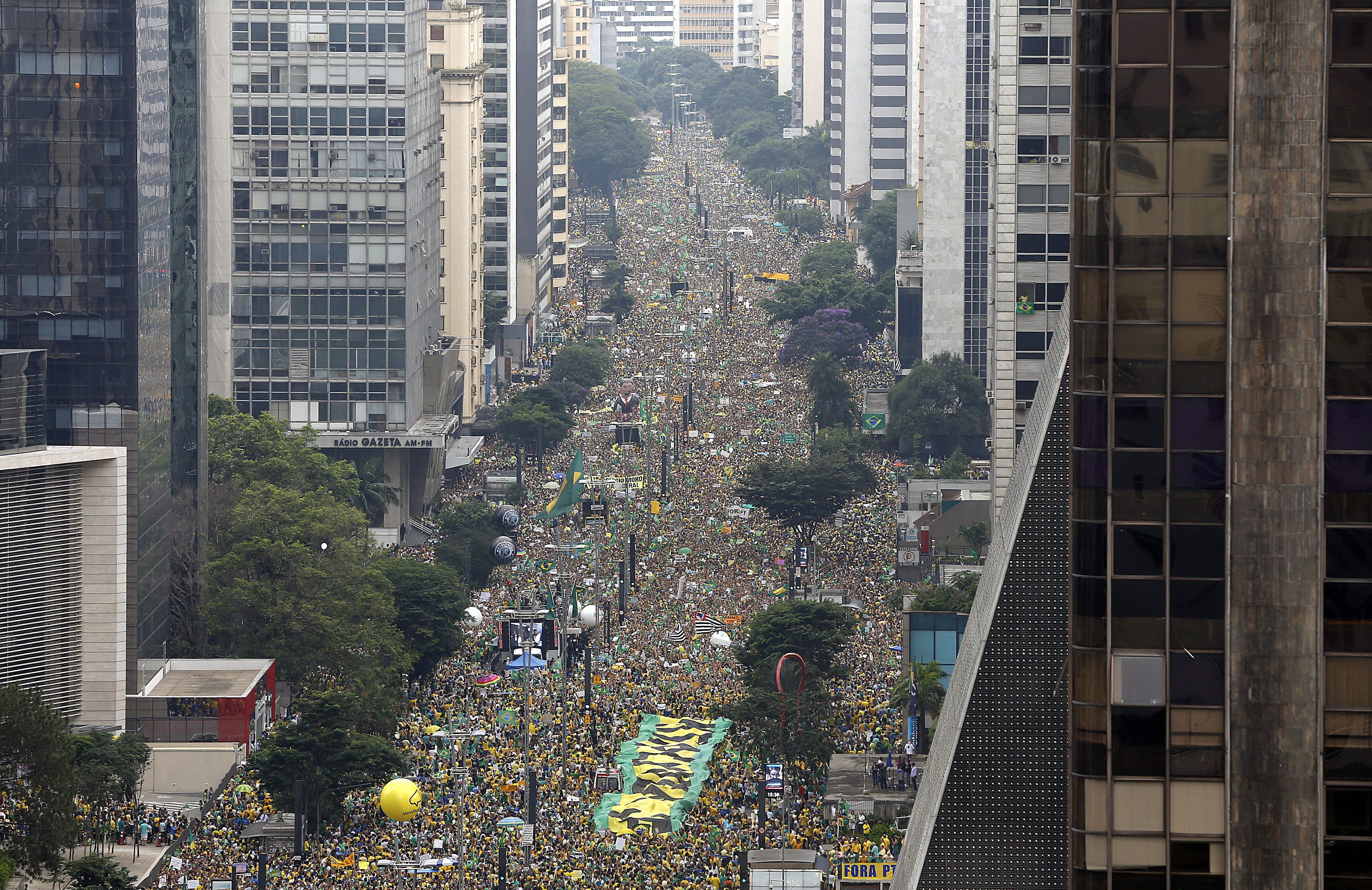Des centaines de milliers de Brésiliens ont défilé dans plus de 400 villes du pays dimanche pour demander la destitution de la présidente Dilma Rousseff.