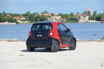 Pour ce qui est de la conduite, c’est un peu comme l’esthétique… bien peu de différences. Le bruit, somme toute envahissant, du moteur à essence fait place à un «silence électrique»: il n’y a que le bruit des pneus sur le bitume, celui, faible, du vent, le «silement» du moteur électrique et le son du climatiseur qui tiennent compagnie au conducteur. Comme on peut s’y attendre d’un engin électrique, les accélérations sont vives. Dans les faits, le 0-100 km/h, selon Smart, est l’affaire de 11,5 secondes, ce qui est bien, mais pas extraordinaire.