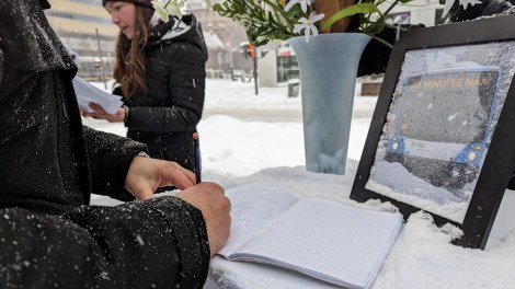 Sur place jeudi matin, les usagers et usagères du défunt service «10 minutes MAX» étaient invités à signer un cahier de condoléances qui sera remis à la STM comme symbole de l’impact des coupures de service pour eux.