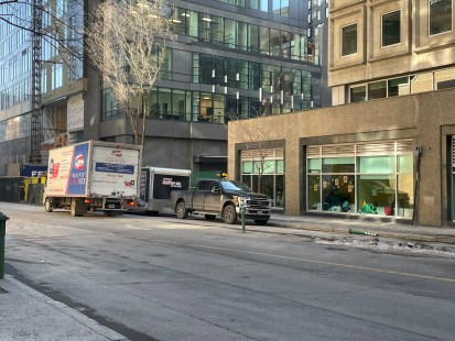 Sur les lieux pendant une heure mercredi matin, Métro a constaté la présence de machinerie dans le chemin à divers moments, ainsi que des camions qui se sont installés dans la zone réservée aux vélos.