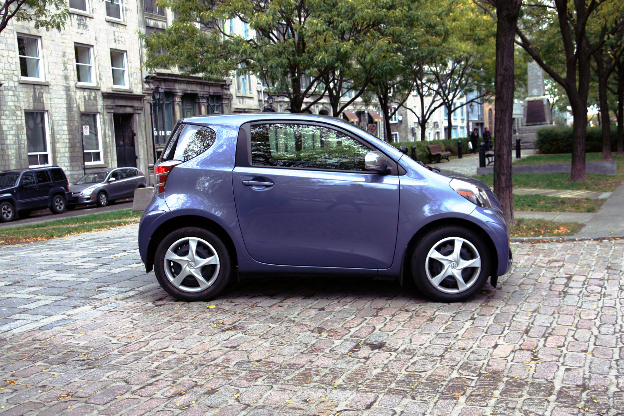 Elle est petite, adorable, et – j’ai encore de la difficulté à le croire! – elle n’occupe que la moitié d’un espace de stationnement. Trouvez un ami qui ait envie lui aussi de s’acheter une iQ, et partagez les frais de stationnement. Elle est petite, et ça marche!