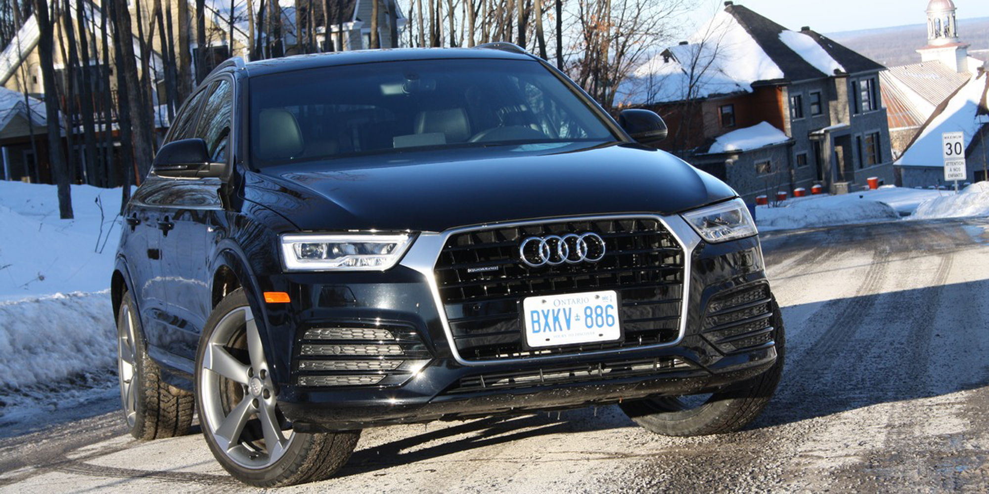 Les VUS de luxe incluent habituellement une transmission intégrale de série au Canada. Cependant, il y a quelques exceptions, et l’Audi Q3 2016 en est une. Notre véhicule était équipé de l’intégrale quattro optionnelle de la marque. Le Q3 se cramponne aux routes enneigées et atteint la vitesse désirée sans effort. On sent le Q3 léger, agile et enjoué.
