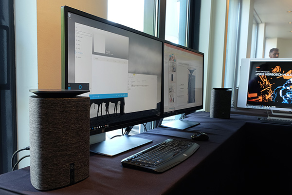 C’est avant tout à ce besoin que répond le HP Pavilion Wave, un ordinateur bâti tout autour d’un gros haut-parleur et recouvert de tissus. Le Pavilion Wave pourrait être utilisé comme centre multimédia dans le salon, mais aussi comme ordinateur régulier. Ses caractéristiques internes sont d’ailleurs suffisantes pour y relier deux moniteurs 4K et pour jouer à des jeux familiaux (on pense à Minecraft, par exemple).