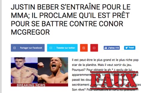 Des lecteurs assidus remarqueront que la grammaire de l’article est aussi très étrange. «Il est peut-être le plus grand et le plus riche pop star de la planète. Mais il veut sortir du jeu. Pourquoi? Pour obtenir le sh * t exclu de lui, apparemment … Oui, tout à fait. Justin Bieber a passé les douze derniers mois en formation secrètement à apprendre les arts martiaux mixtes. Son rêve? Pour combattre à l’UFC. Et prendre Conor McGregor!» peut-on lire.
