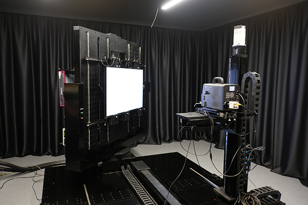 La caméra montée sur un bras robotisé analyse le téléviseur d’une façon objective, sur toute sa surface et de tous les angles possibles (le téléviseur lui-même est tourné automatiquement sur son axe pour changer l’angle de vue).