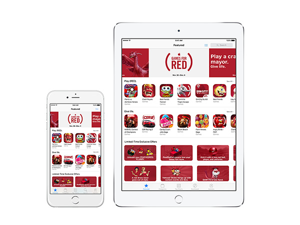 Apple collabore avec l’organisme (RED) depuis sa création en 2006 par le chanteur Bono et son partenaire Bobby Shriver, en vendant notamment des produits rouges comme des iPod et des étuis pour iPhone. Si ces appareils et accessoires continuent d’être offerts cette année (avec en plus des dons à chaque transaction effectuée par le service de paiement mobile Apple Pay), le coeur de la campagne se déroulera plutôt virtuellement sur l’App Store.