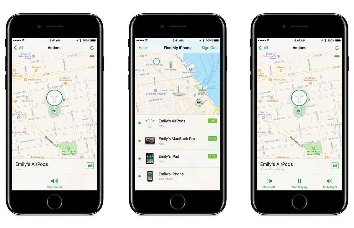 L’application pourra faire émettre un son par les écouteurs et afficher leur position en direct, ou encore le dernier endroit où ils ont été aperçus s’ils sont déchargés ou s’ils ne sont pas à proximité d’un appareil iOS.