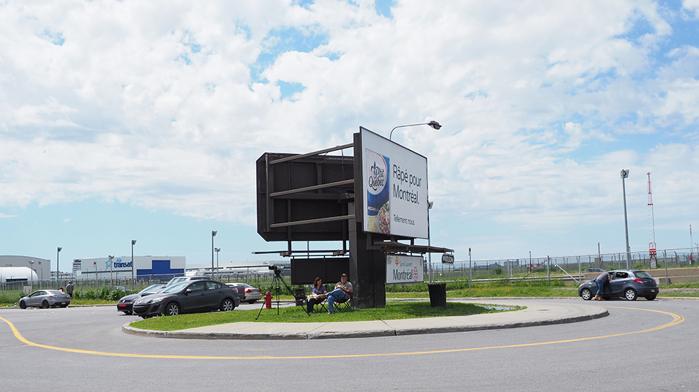 Le rond-point Pitfield n’est pas l’endroit le plus bucolique de Montréal, mais offre une vue saisissante des avions à l’atterrissage.