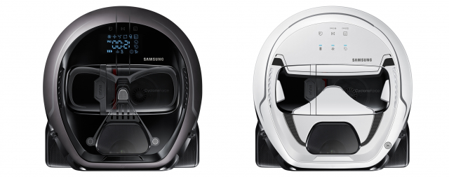 Encore plus original, Samsung propose de son côté de faire le grand ménage avec ses deux aspirateurs connectés directement inspirés du côté obscur. Aux effigies de Dark Vador et d’un Stormtrooper, ces éditions spéciales sont issues de la gamme VR7000. Pour rappel, il s’agit de robots dotés d’un système de navigation qui, à l’aide de ses capteurs sensitifs, permet de détecter et de mémoriser les moindres contours d’une pièce pour un nettoyage complet pouvant être déclenché et contrôlé à distance. Ils bénéficient en outre d’une force d’aspiration de 10W. A noter que ces deux modèles proposent quelques effets sonores insolites.