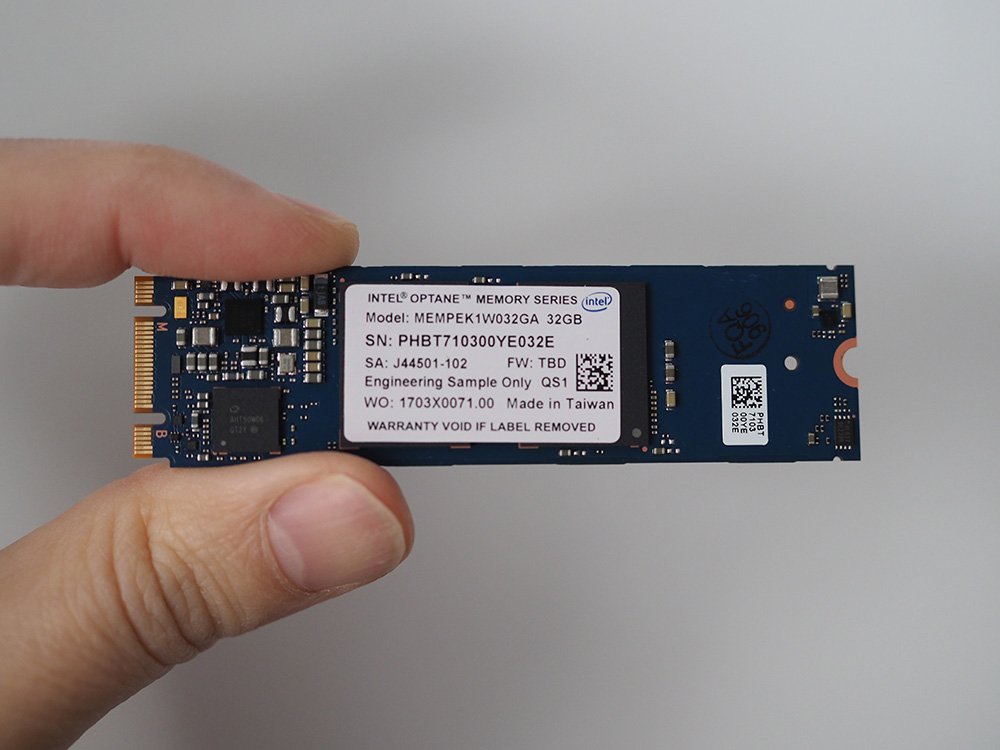 Il existe deux formats de mémoire Intel Optane : un de 16 Go pour les activités de bureautique et le web, et un de 32 Go pour le jeu et les applications professionnelles (montage, traitement 3D, etc.). J’ai essayé le modèle de 32 Go pour ce billet.
