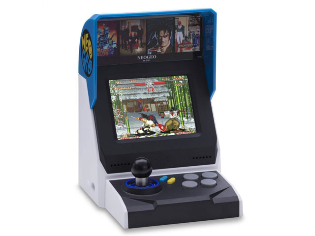 La NeoGeo était à l’époque une alternative haut de gamme aux consoles Sega et Nintendo. Elle promettait une qualité de jeu digne des arcades. Cette version prend donc la forme d’une cabine d’arcade avec manette et écran de 8,8 cm intégrés. Il faut brancher un câble Mini HDMI au câble HDMI pour l’utiliser sur un autre écran. Des mini manettes Neo Geo sont vendues séparément. 40 jeux sont inclus, dont ceux des franchises King of Fighters et Samurai Showdown, ainsi que les séries Metal Slug et King of the Monsters. Pour l’instant, on peut seulement l’acheter en ligne sur le site d’Amazon.