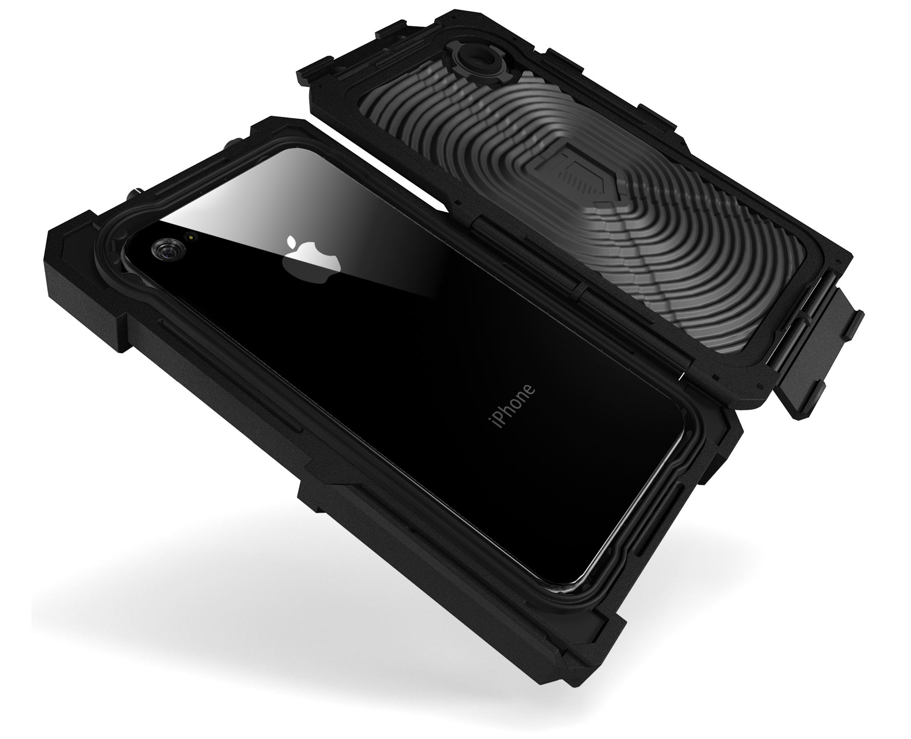 L’enveloppe intérieure est le fruit de deux technologies brevetées : ShockSeal et Shockpad. Il s’agit en fait d’une paroi en silicone absorbant les chocs et d’un contour imperméable. Un puissant loquet maintient bien l’appareil en place. L’extérieur en polycarbonate a une texture rugueuse permettant de manier l’appareil avec assurance, même avec des gants ou des mitaines!