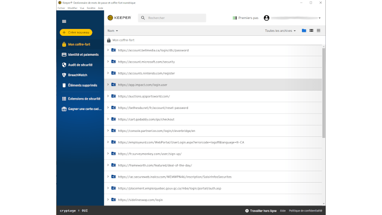 Étant un gestionnaire de mots de passe, Keeper nous propose d’abord de stocker et de protéger les mots de passe qu’on possède déjà ainsi que nos données personnelles des pirates.