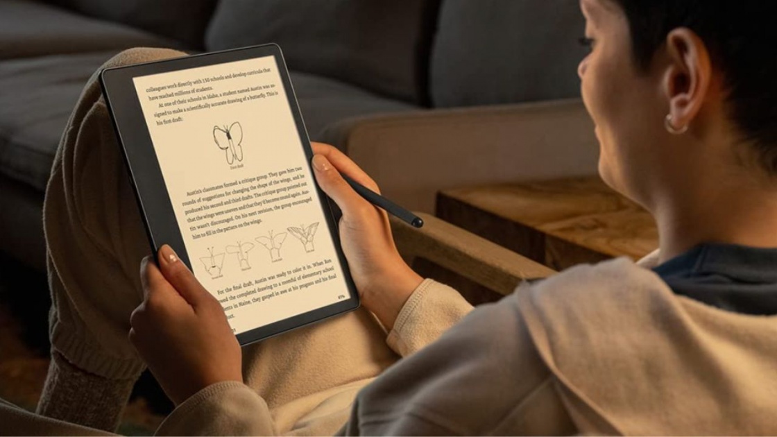 Un aperçu de la liseuse Kindle Scribe d’Amazon, qui permet à la fois de lire et de prendre des notes.