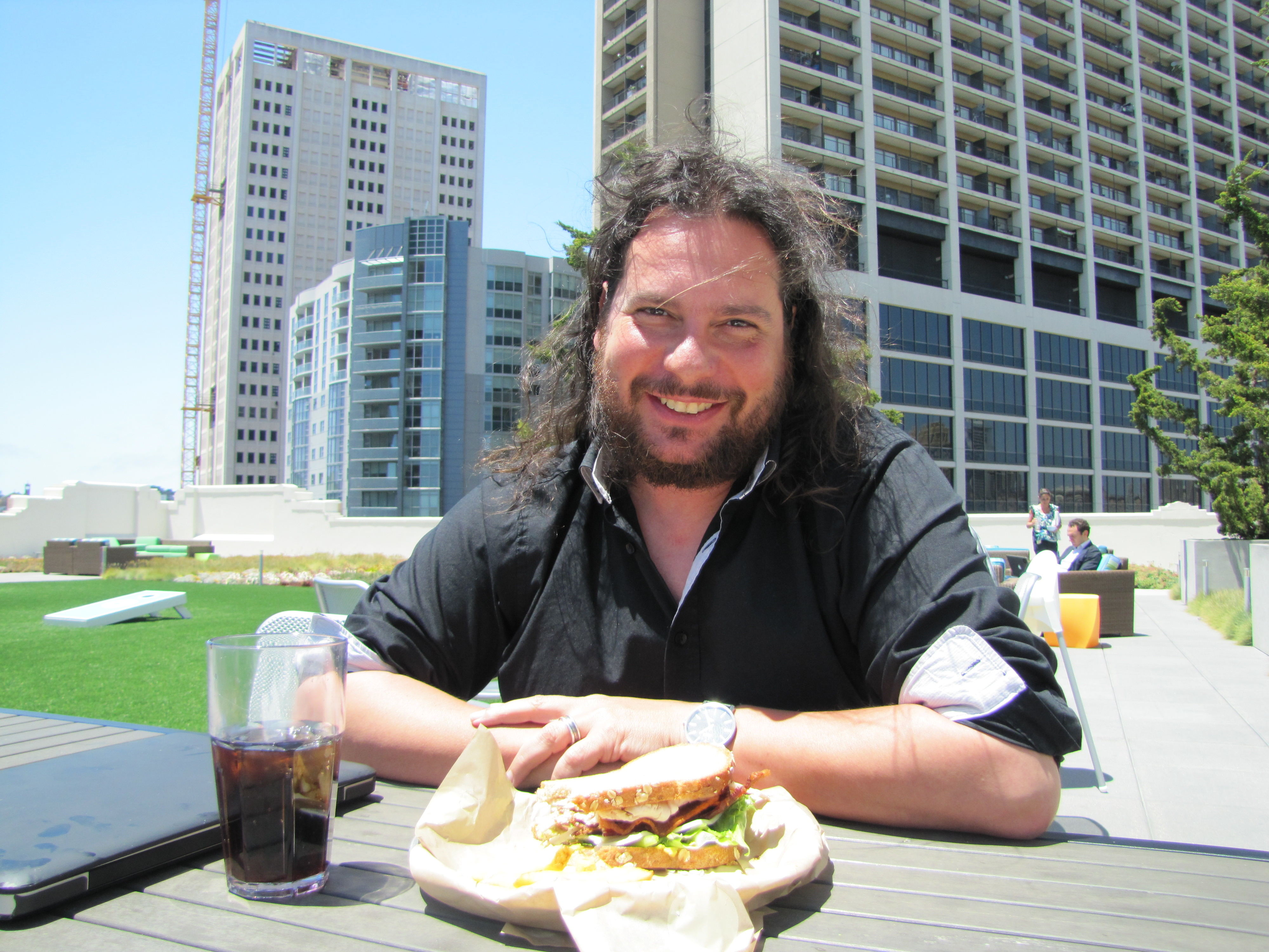 Retour à la cafétéria. «Quatre ou cinq choix de plats plus délicieux les uns que les autres, produits frais, locaux, bio, équitables. On est en Californie après tout!» Plutôt rondelet, Carle livre une bataille de tous les jours contre le terrible «Twitter Twenty».