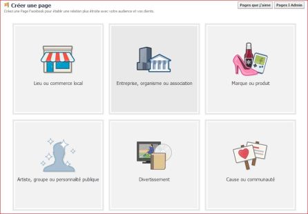 Création: Tout d’abord, allez à la page de création de pages: https://www.facebook.com/pages/create/, vous obtiendrez ces options: