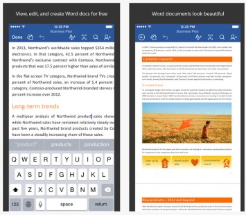 Après l’iPad en mars 2014, la suite Microsoft Office arrive sur iPhone et sur les terminaux Android. L’ensemble de ces applications est disponible en mode freemium, ce qui signifie que l’accès à l’ensemble des fonctionnalités de base (lire, créer et éditer des documents Word, Excel et Powerpoint) est gratuite et que seules les options (stockage en ligne) sont payantes, sous forme d’abonnement.