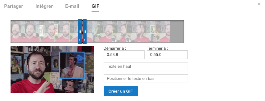 L’outil mis en place par YouTube permet de sélectionner un extrait de vidéo d’au maximum 6 secondes afin d’en faire un Gif animé. Le résultat prend la forme d’un code à insérer sur n’importe quelle page Web.