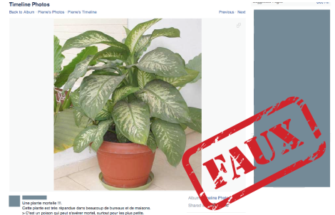 Dans l’histoire partagée sur Facebook, on allègue que – horreur! – cette plante, qui se retrouve dans presque toutes les maisons et bureaux du monde, est très toxique, voire mortelle! Elle peut «tuer un adulte en moins d’une heure» et un enfant en «quelques minutes». Mais diantre, quel psychopathe a décidé de vendre cette plante dans la section jardinage de tous les magasins à grande surface? Pourquoi ne l’éradiquons-nous pas tout court?