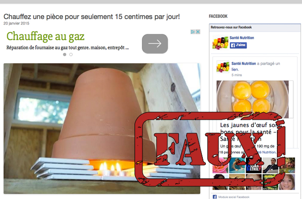 Si vous avez un compte Facebook, vous avez sans doute vu passer cette nouvelle. On y explique qu’à l’aide de quatre chandelles et deux pots de fleurs, on peut construire un petit dispositif (le mot exact est «bidule» ou «patente à gosse»), lequel permettra de réchauffer une pièce de manière naturelle et à coût modique.