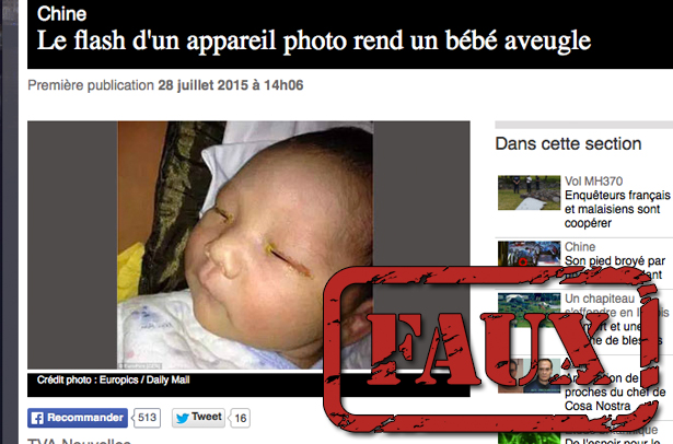 Plusieurs sites (dont nos collègues chez TVA) nous apprenaient la semaine dernière qu’un petit bébé chinois a été aveuglé d’un œil par le flash d’une caméra sur un téléphone mobile. On raconte qu’un ami de la famille est venu visiter le bébé, et a pris une photo à l’aide de son téléphone (l’histoire ne dit pas si c’était un selfie, mais l’inspecteur assume que oui), en oubliant de désactiver son flash.