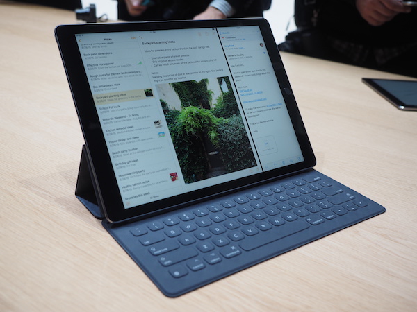 Il n’y a toutefois pas que l’écran qui permet à l’iPad Pro de se donner des airs d’ordinateurs. Le futur système d’exploitation iOS 9 a aussi été doté de quelques améliorations qui augmentent la productivité de la tablette, comme la possibilité d’afficher deux applications en même temps (soit une très grande et une petite, ou encore deux grandes, qui prennent exactement la taille d’une application normale sur un iPad régulier). Plusieurs raccourcis ont été ajoutés à iOS 9 pour ceux qui utilisent un clavier.