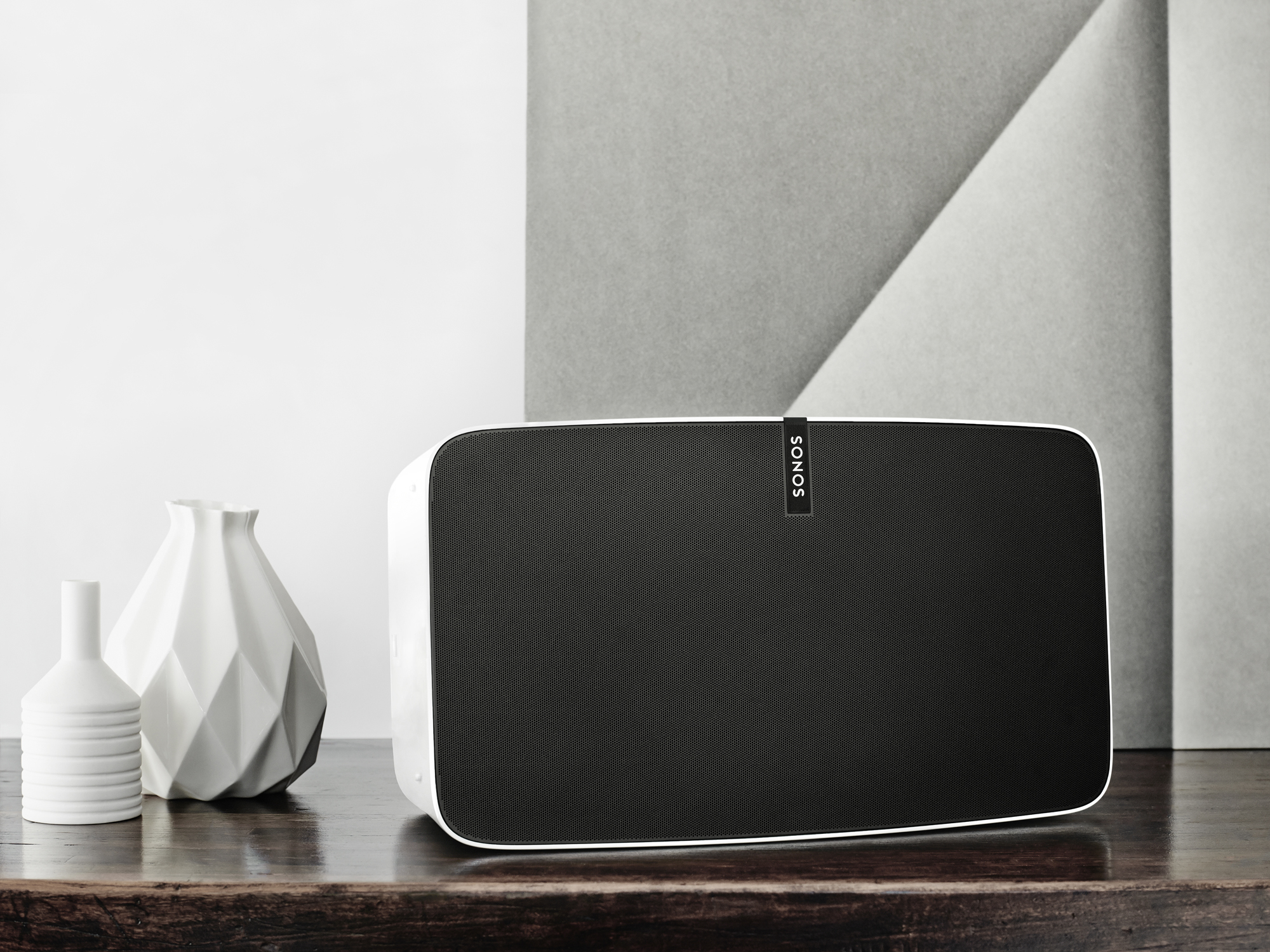 Le Sonos Play:5 offre avant tout un nouveau design, qui se veut plus intemporel que le précédent. Sa puissance suffit pour une pièce de bonne taille, grâce à ses six pilotes, et il est aussi possible d’en acheter un second pour créer un son stéréophonique.