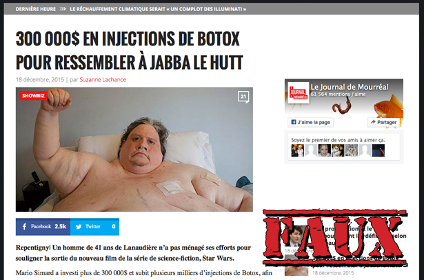 Le Journal de Mourréal, est un site de fausses nouvelles «satiriques» (remarquez les guillemets).