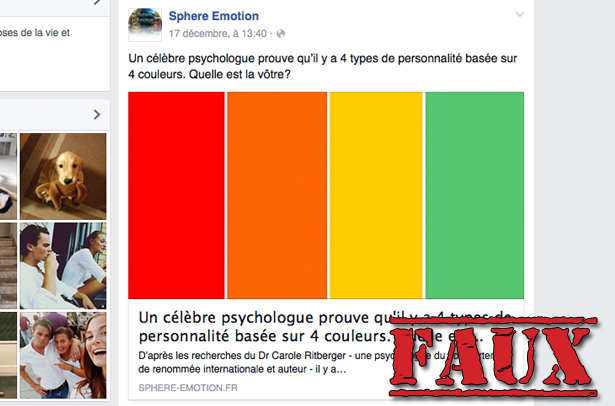 Dès que quelqu’un vous ment sur l’internet, l’inspecteur s’en mêle. Ce test n’a pas été mis au point par une psychologue. Pourquoi le site ne dit-il pas «prenez ce test rigolo, c’est amusant» plutôt que «Un célèbre psychologue prouve qu’il y a 4 types de personnalité basée sur 4 couleurs»? C’est malhonnête. On prête une crédibilité à ce test qu’il n’a tout simplement pas, en se disant que vous allez y croire et le partager.