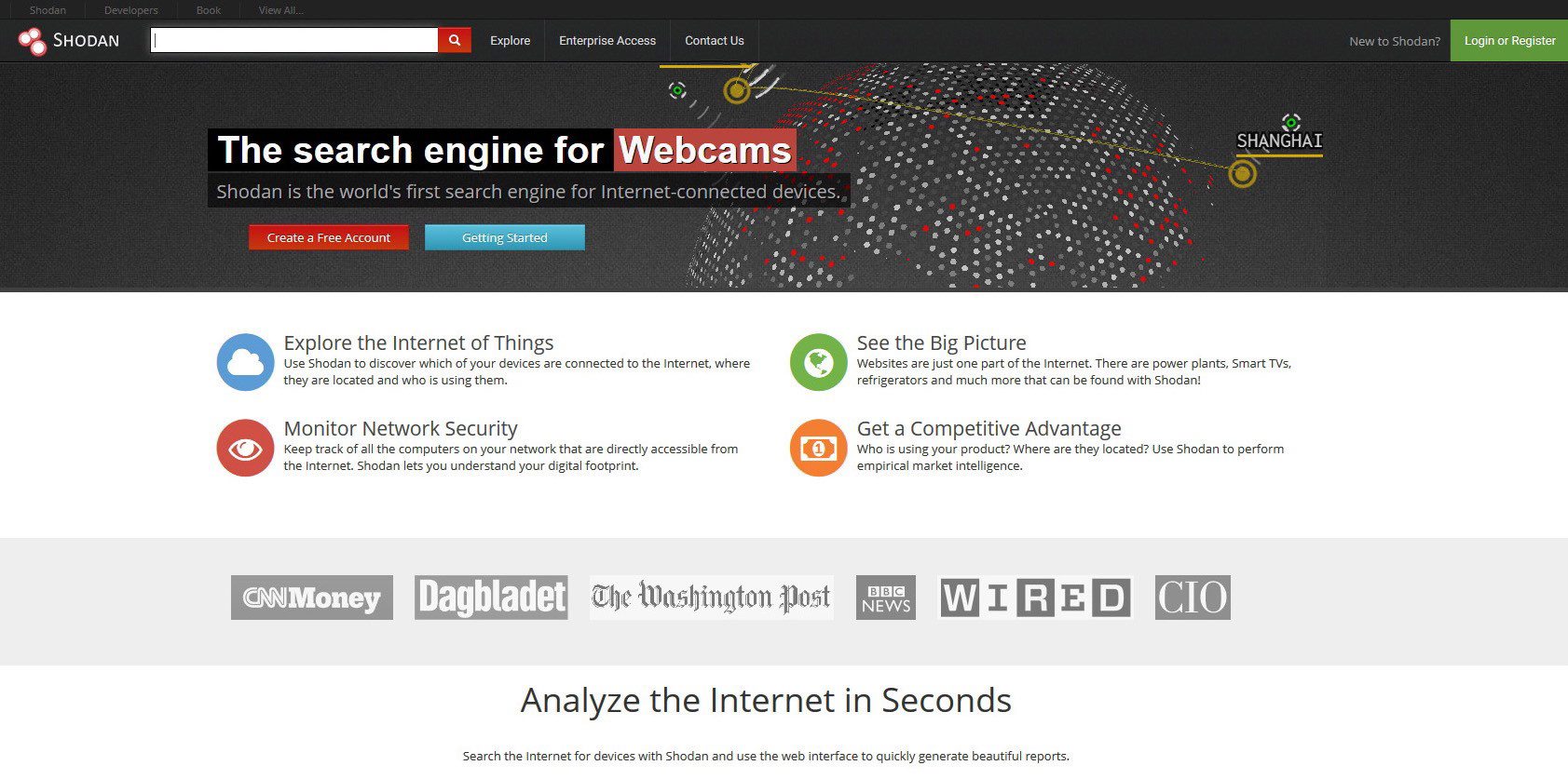 A screengrab from the Shodan home page is shown. Shodan, a search engine that indexes computers and devices rather than information, now allows users to pull screenshots from nanny cams, security cameras and other connected devices around the world that don't ask for a username or password. THE CANADIAN PRESS/HO