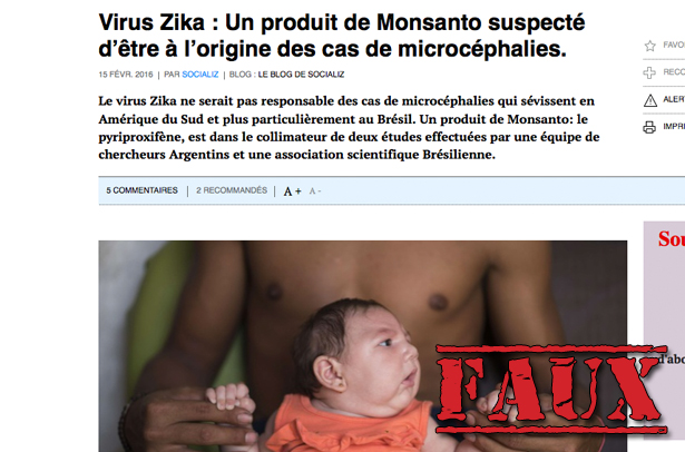 «Virus Zika : Un produit de Monsanto suspecté d’être à l’origine des cas de microcéphalie», pouvait-on lire dans un article.